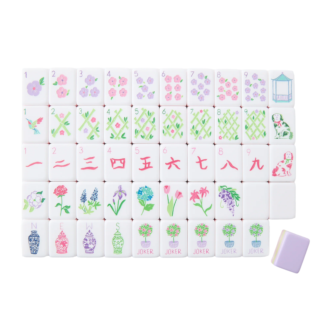 Introducing the exquisite Taylor Tiles, crafted in collaboration with Taylor Paladino, a Dallas-based watercolor artist. This stunning set features a soft lilac backdrop elegantly layered with refreshing lime green and delicate baby pink accents. The Taylor Tiles are where punchy pastel hues meet country club sophistication and charm. This captivating collection incorporates a pastel palette appealing to the girly girls and the chic shoppers alike to elevate your Mahjong experience to new heights. Each tile in the Taylor line is meticulously crafted from premium materials, ensuring exceptional quality and countless evenings of elegant and delightful play.