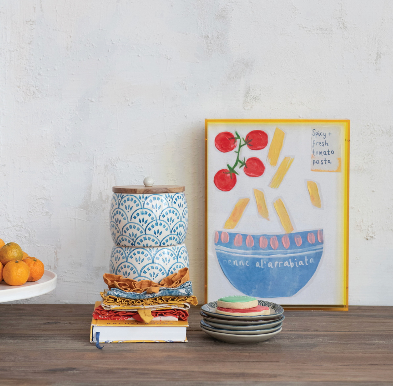 Ideal accent for modern farmhouse, Mediterranean, or contemporary kitchen décor. Perfect for food lovers and home enthusiasts seeking functional art that celebrates the joy of cooking and dining.