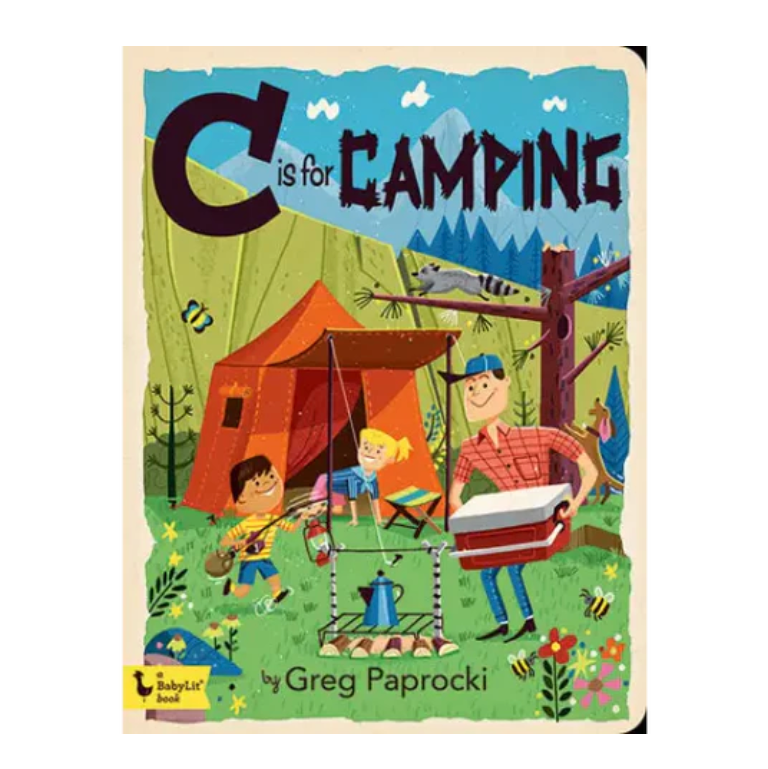 An engaging collection of 26 illustrations featuring campground favorites from Campfires and Hammocks to S’mores and Wildlife. Illustrator Greg Paprocki’s popular BabyLit alphabet board books feature his classically retro midcentury art style that’s proven to be a hit with both toddlers and adults. Discover new details in each illustration with every successive reading.