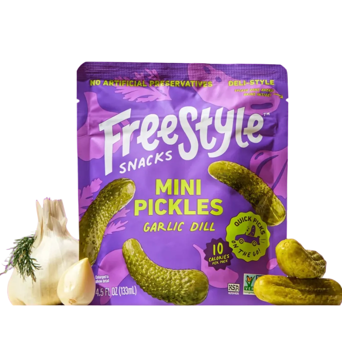 Our Garlic Dill Mini pickles are bold, briny, and loaded with garlicky zing in every crunchy bite. Loud & proud and loaded with bite, they’re the pickle equivalent of turning the volume all the way up. Keep them in your bag or drop them in a bowl - they’re a little bold in a big way.