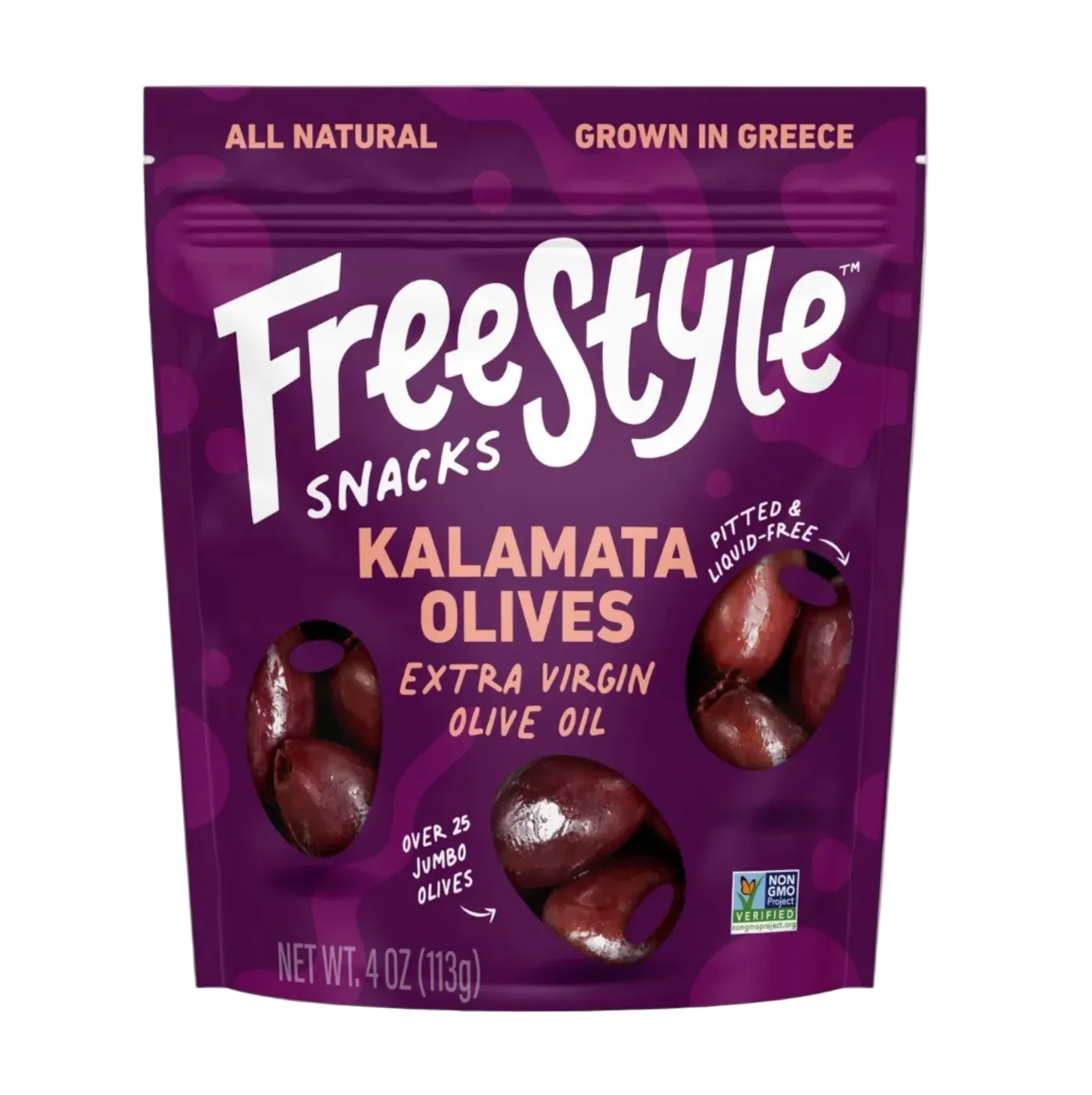 Freestyle Snacks Original Kalamata olives are grown in Greece and harvested when juicy. Marinated in extra virgin olive oil and a hint of sea salt, each of our olives brings an explosion of mouthwatering goodness.