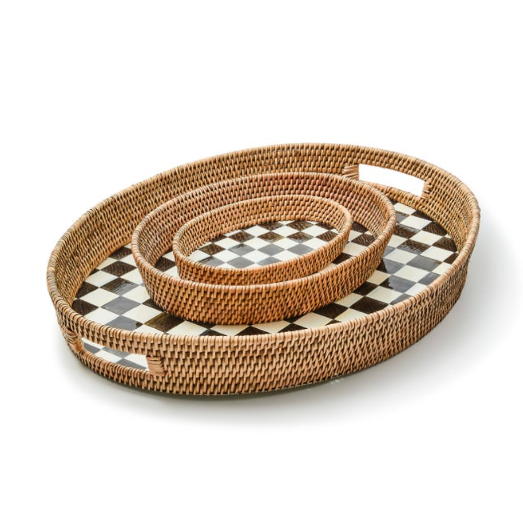 Mackenzie Childs Courtly Check Enamel & Rattan Tray