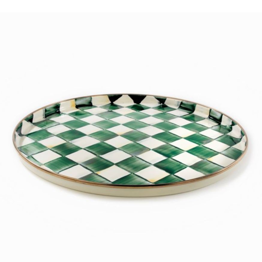 MacKenzie Childs Emerald Check Enamel Round Tray