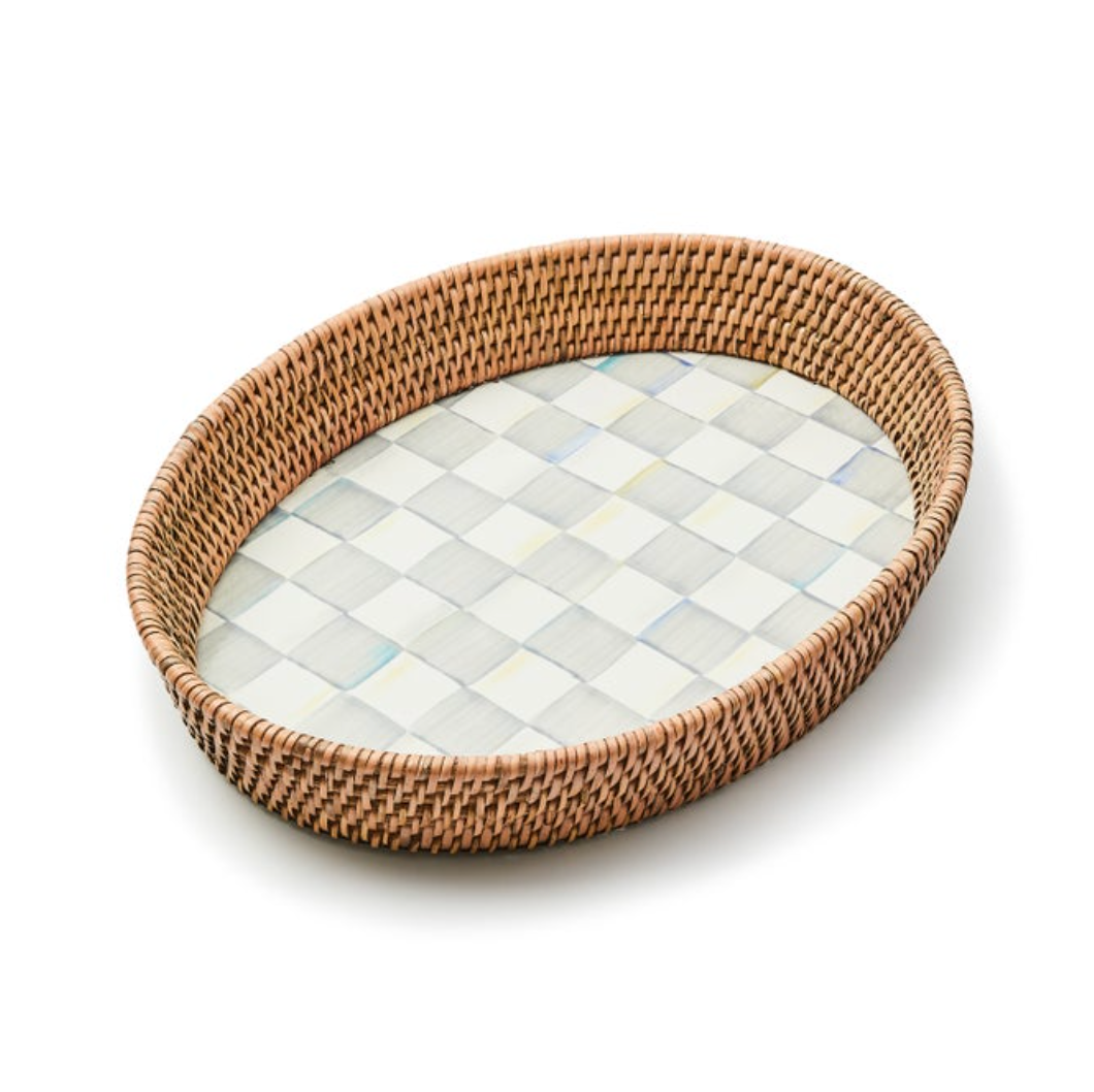 Mackenzie Childs Sterling Check Enamel & Rattan Tray