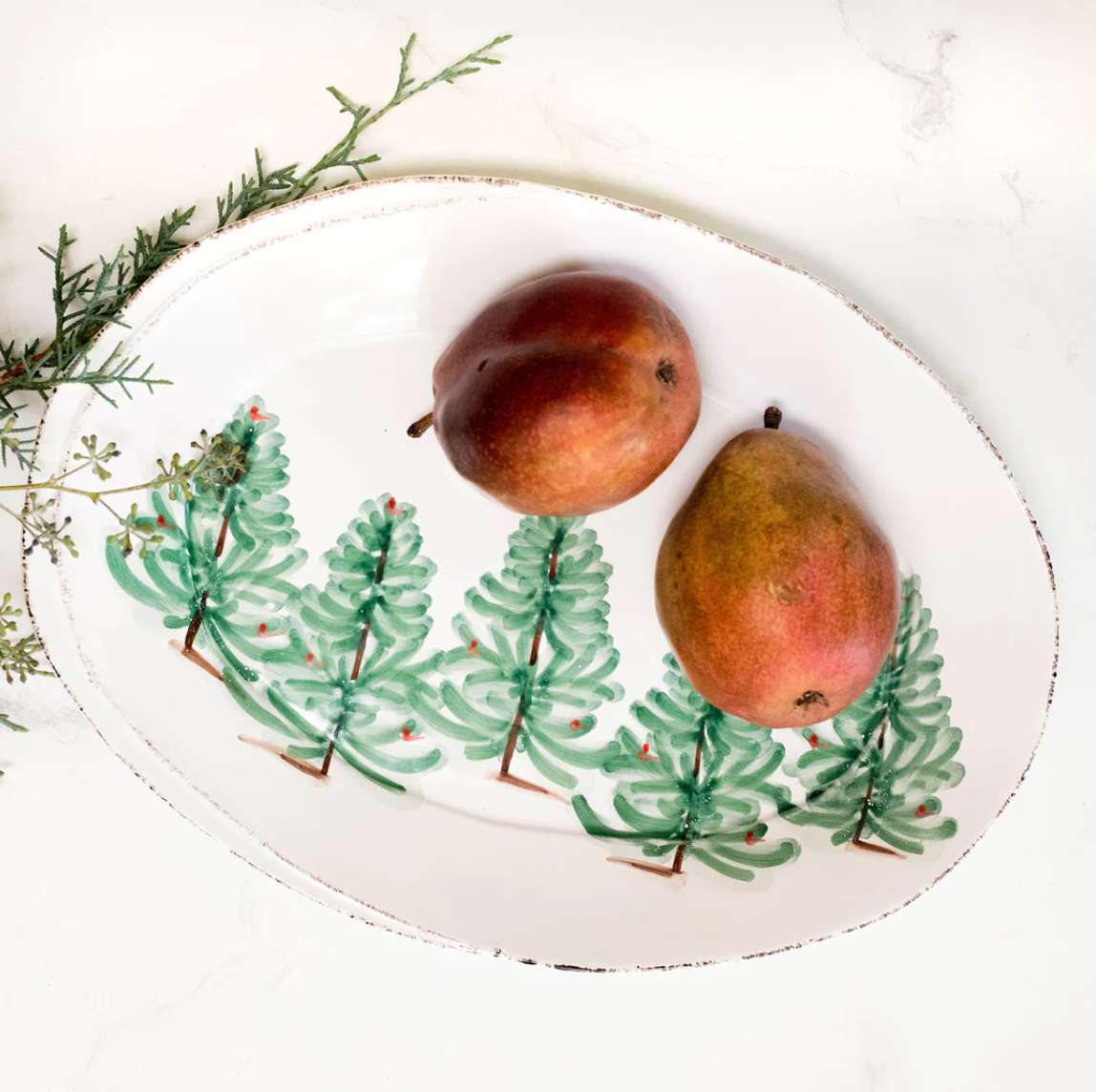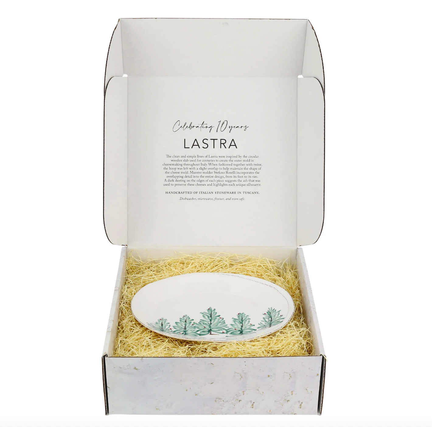 Delight in the magic of the holiday season with the Lastra Holiday Small Oval Serving Platter. Whether you are hosting a winter brunch or a Christmas dinner, this collection is the perfect complement to your holiday decor. Handpainted on Italian stoneware in Tuscany.