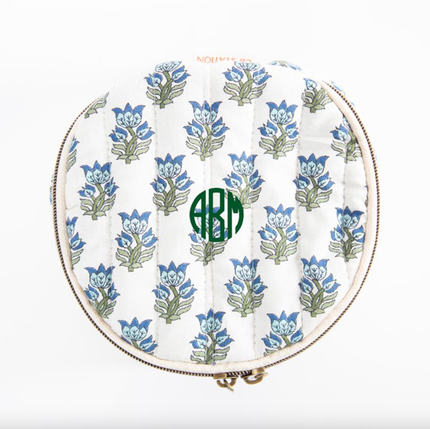 Small, compact, and designed for all your fine essentials, this block print circle case is both stylish and functional.