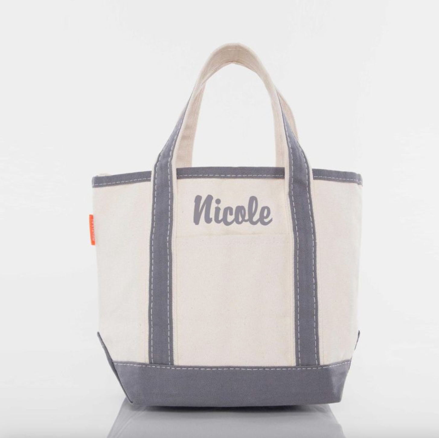 Totes are available with or without monogramming. If choosing the monogramed option, you will receive an email within 48 hours from a Waiting On Martha team member with all of your monogramming options.