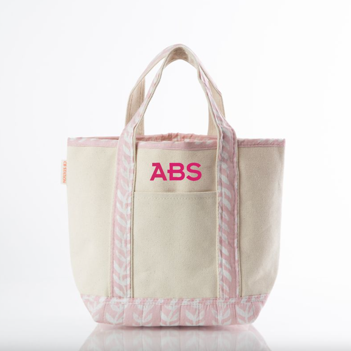 Totes are available with or without monogramming. If choosing the monogramed option, you will receive an email within 48 hours from a Waiting On Martha team member with all of your monogramming options.