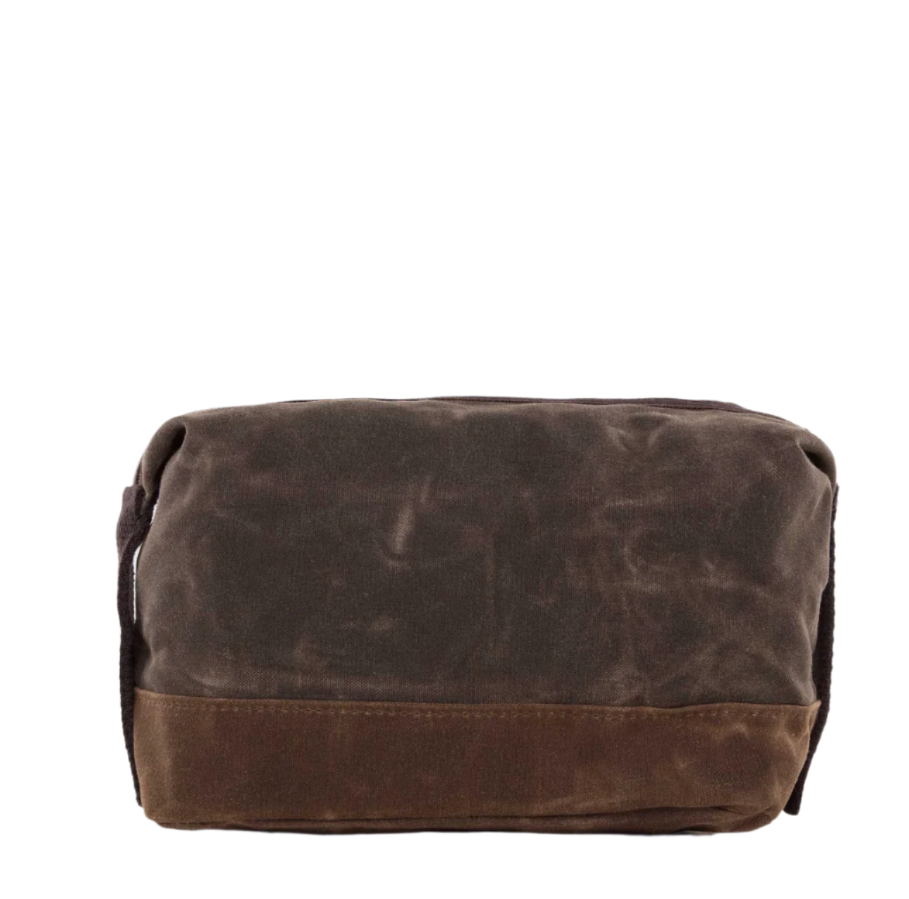 Wow! We just can't get enough of our new Waxed Canvas Top-Zip Dopp Kit! Our largest and most spacious travel dopp kit to date, this style is sure to fit all of your travel needs without a struggle to zip it closed! Its stylish design features side antique brass snaps for additional closure and a higher end look, a patterned Gray Stripes Canvas inner lining, and rich deep brown accents throughout.