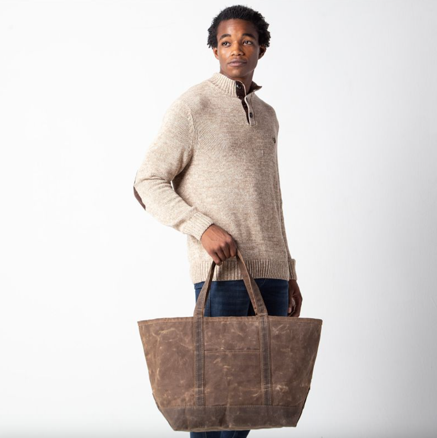 Meet our waxed Classic Tote, your foremost companion. With a secure top zip, it's the ultimate men's boating bag. The interior hosts a roomy hanging zip pocket with slots for phones and wallets. An outer pocket grants easy access to smaller items. Beyond a bag – your comprehensive answer!