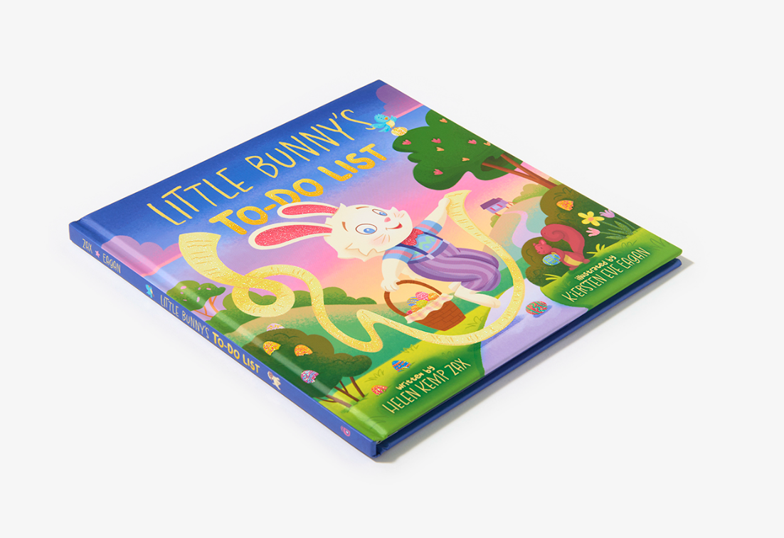 The textured glitter-stamped cover is so inviting that young readers will be eager to accompany Little Bunny during his very busy day, and they will be in for another sparkly surprise when they unfold a secret flap at the end of the book to see all the items in Little Bunny’s to-do list checked off in glittery ink!