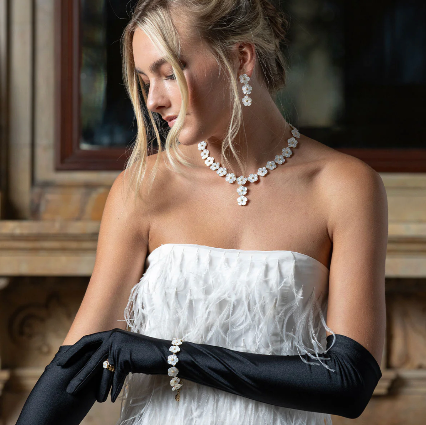 With the bohemian whimsy of a daisy chain, the botanical beauty of this bracelet is elevated by golden berry accents, exquisite hand-carved detailing, and the eye-catching luminescence of natural mother of pearl. Fresh, playful and polished, this outfit-finisher boldly brings femininity and a little flower power to everything from your favorite jeans and t-shirt to a cocktail dress for a garden party.
