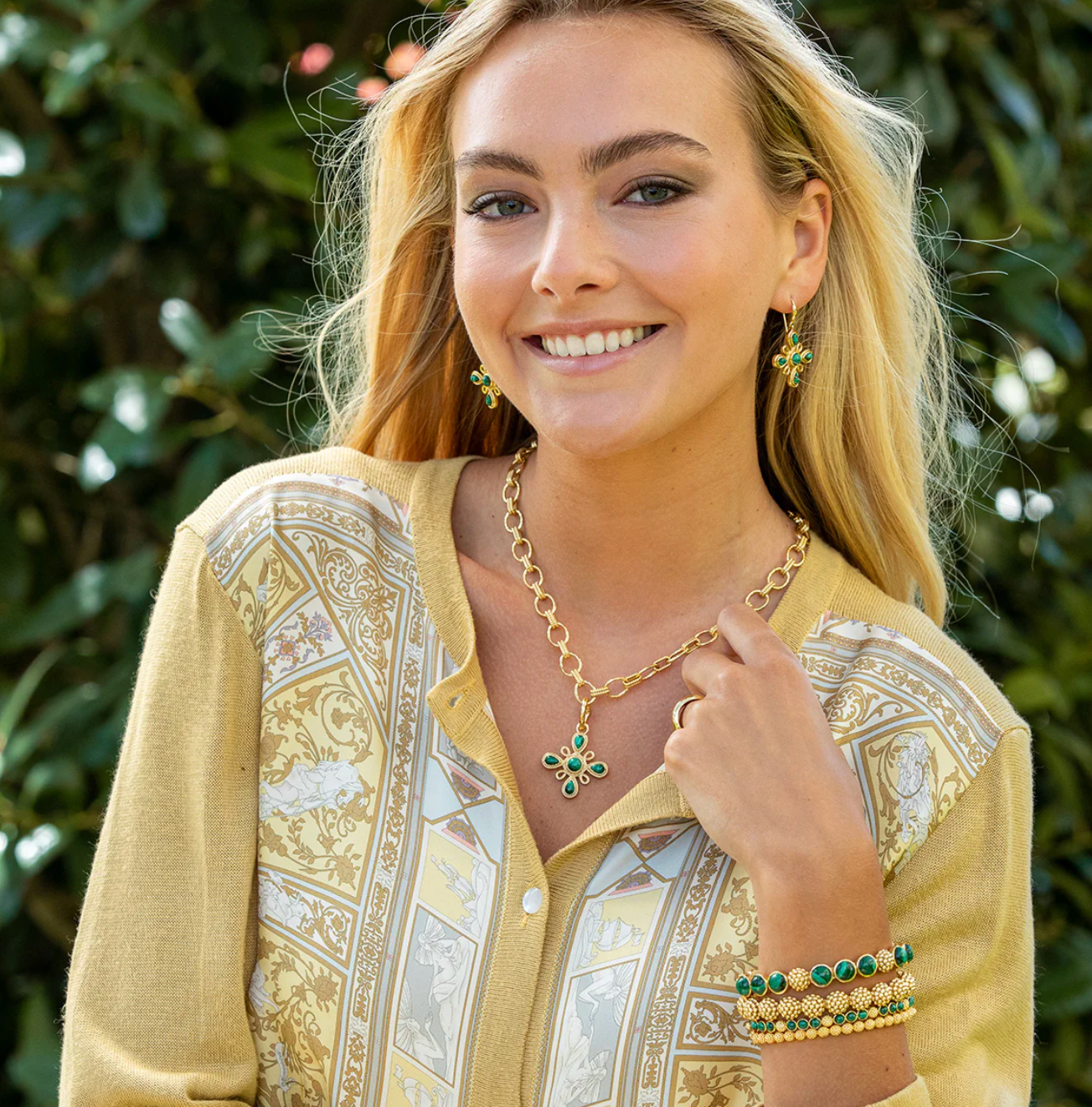This swirling, golden pendant portrays an ornate compass with gorgeous green malachite to remind you to trust your instincts and follow your own true north. From bracelet to necklace, this charm works on any chain.