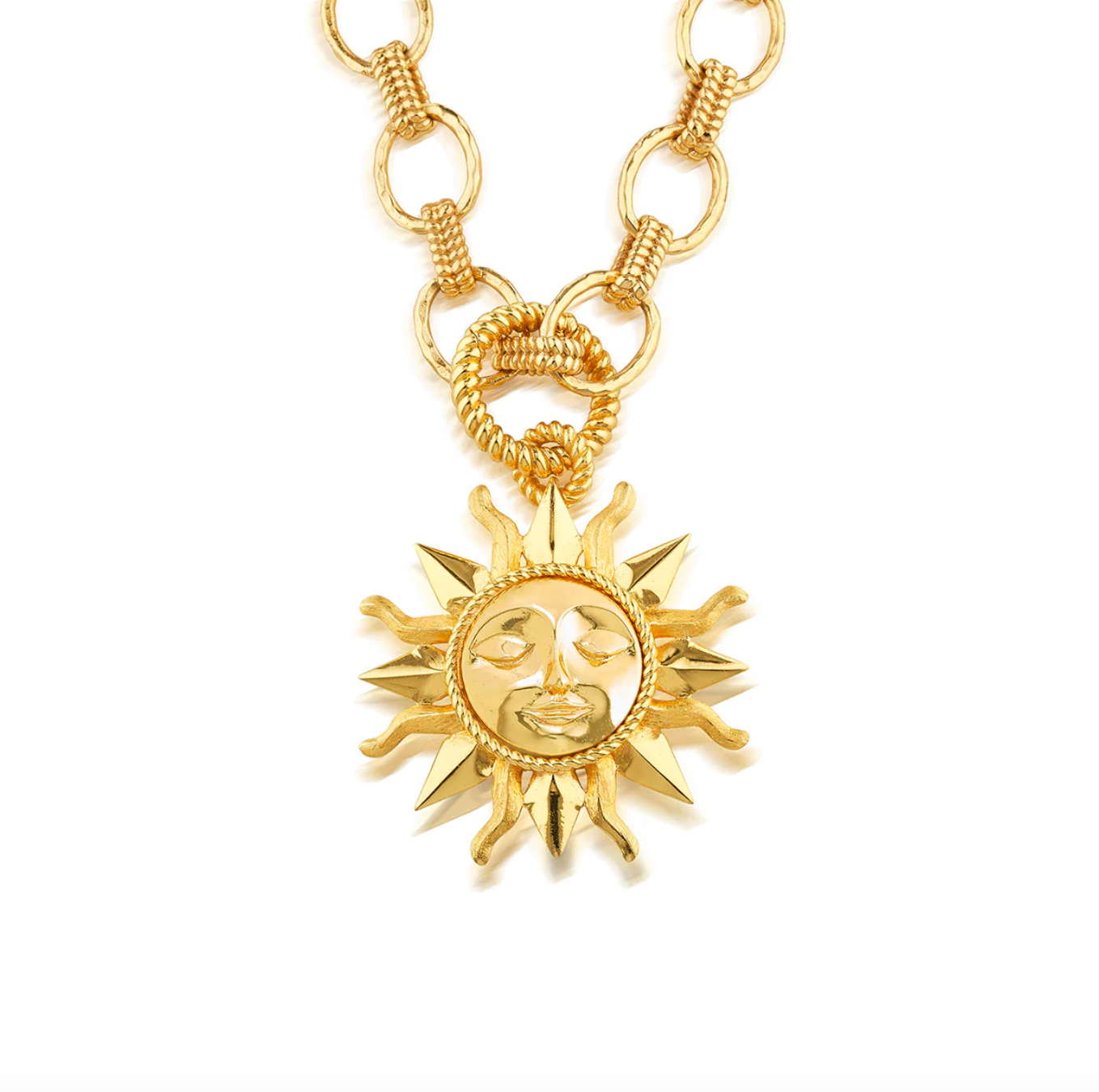 Our symbol for female strength, the sun is steadfast, nurturing, and the vital spark for all. It rises every day to warm and watch over the earth, its radiant blaze the catalyst for growth. From bracelet to necklace, this shimmering gold charm works brilliantly on any chain and is a reminder to go boldly every day and always let your inner light shine bright.