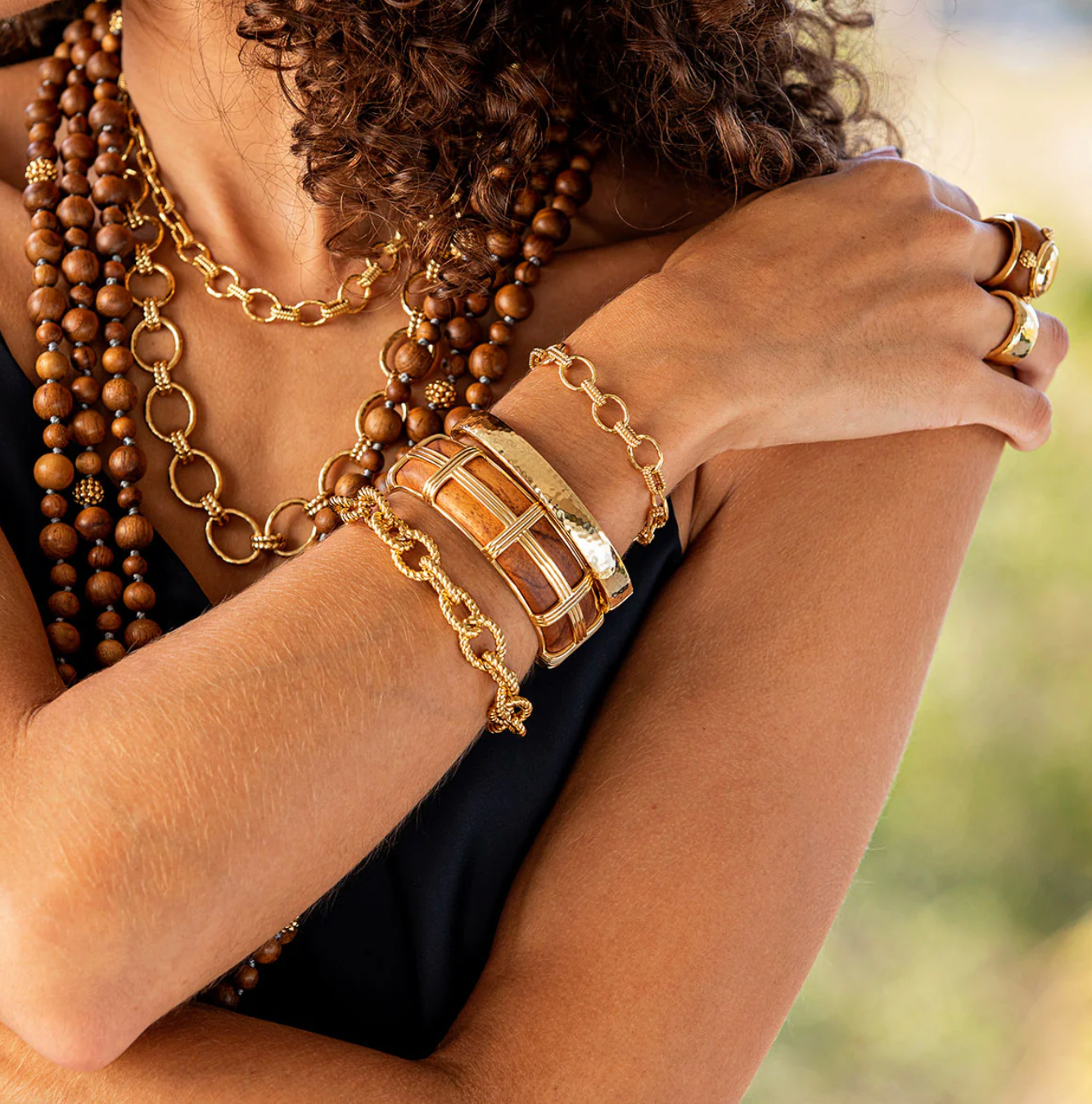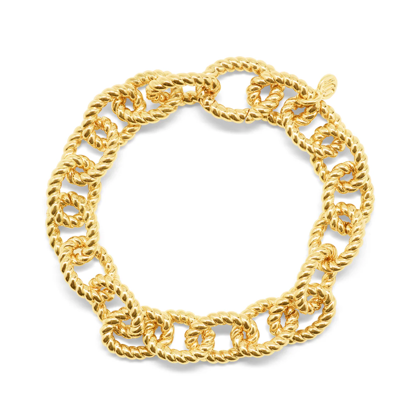 This small rope link bracelet carries a regal essence and looks just as gorgeous with a pair of jeans as it does with a cocktail dress. To complete your set, the Victoria Small Chain Necklace matches exactly, and you can even link the bracelet and necklace together to create a long statement necklace.