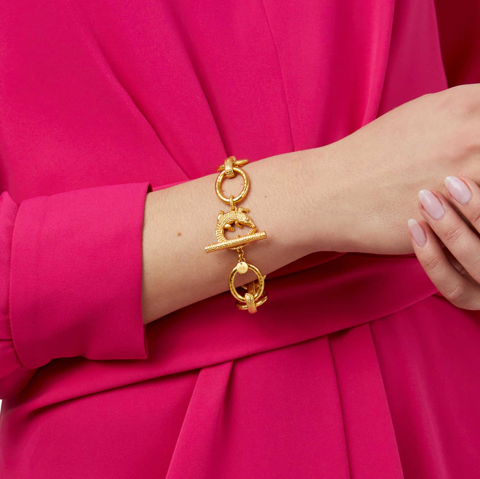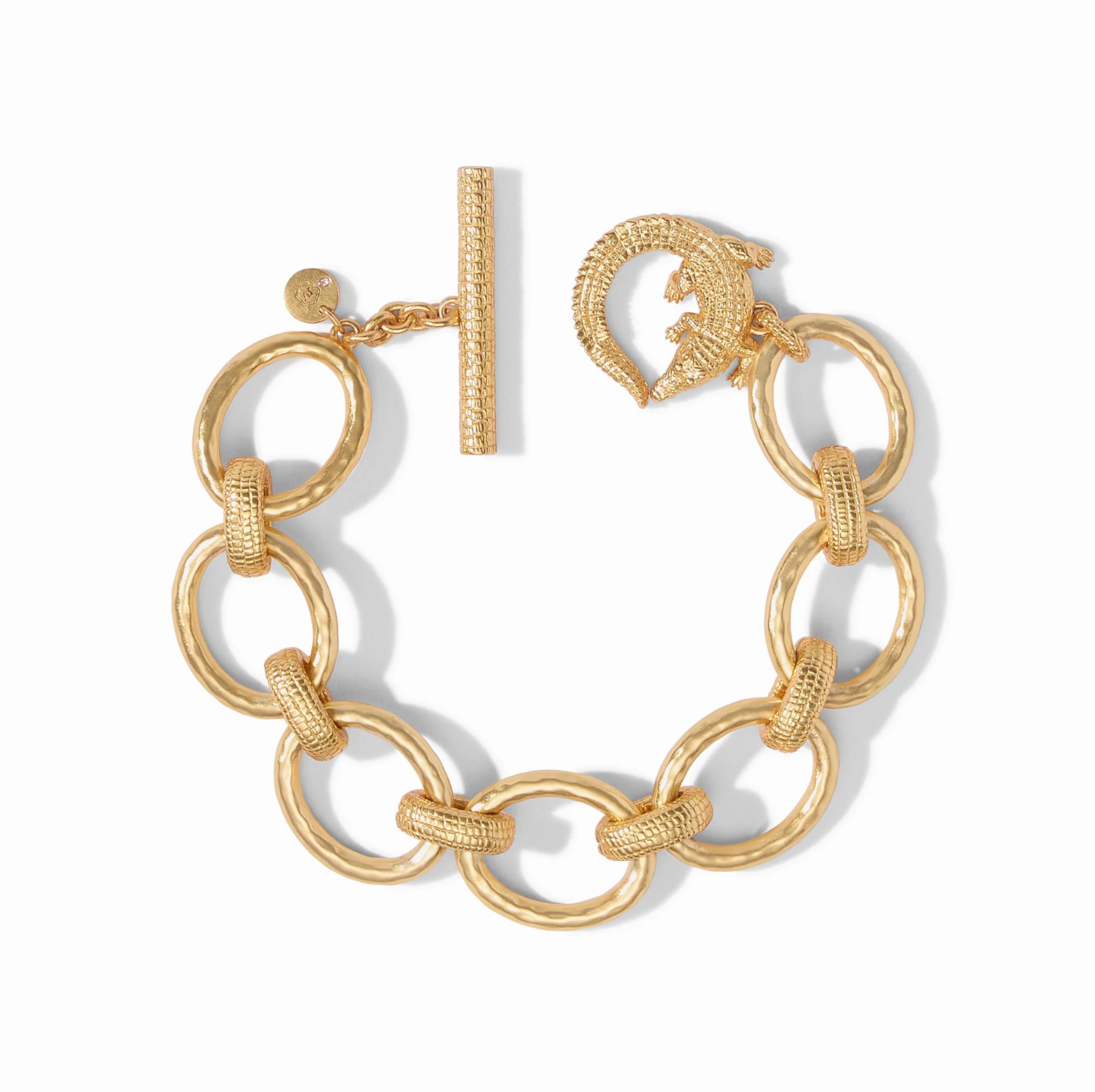 Lightly hammered oval links with textured connecting links, finished with an alligator toggle ring and textured toggle.