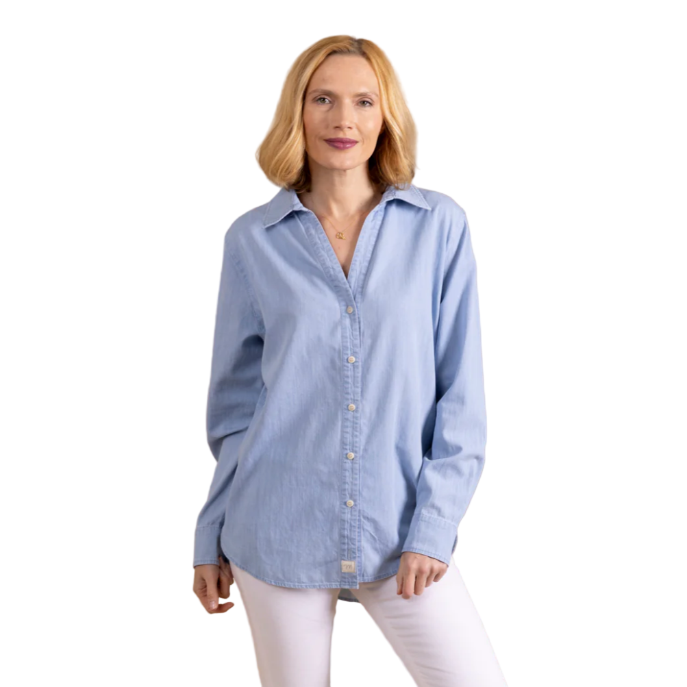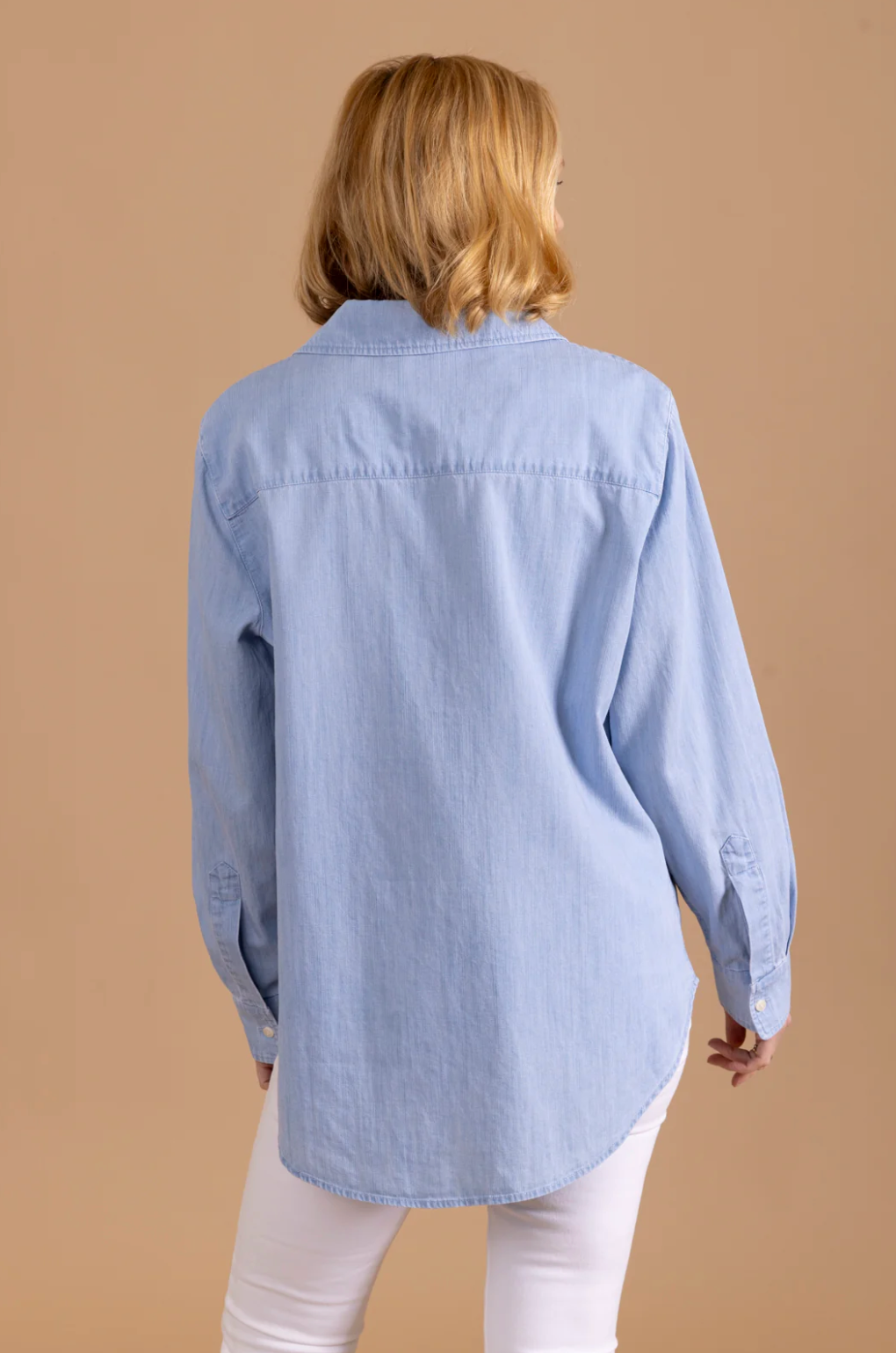 This classic button-down strikes the perfect balance between laid-back and polished, making it your go-to for everything from casual coffee runs to impromptu brunch dates. Soft denim meets timeless style, so whether you dress it up or down, it effortlessly elevates your everyday look.