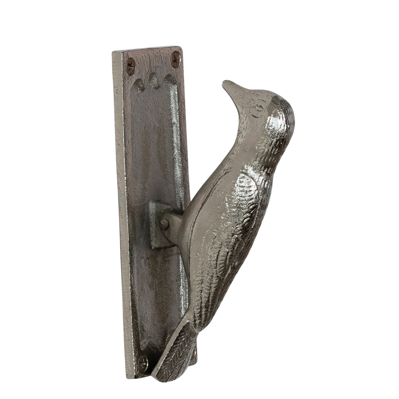 Welcome guests with timeless style using this cast iron bird door knocker. The intricate bird silhouette and lustrous nickel finish create an eye-catching focal point for any front door. This durable knocker produces a distinctive sound and resists rust and weathering. An ideal choice for homeowners seeking to blend functional hardware with decorative flair, whether your aesthetic leans traditional, cottage-inspired, or contemporary.