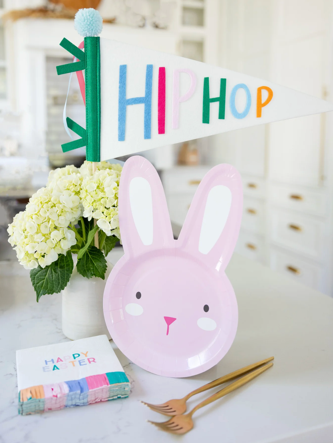 Made with bright, cheerful felt and playful “hip hop” lettering, this pennant adds instant charm and a wink of humor to your Easter décor. Perfect for mantels, shelves, gallery walls, or party backdrops, it brings a modern, crafty twist to spring decorating. Whether you’re hosting an Easter brunch or just want your space to feel extra festive, this happy little banner is ready to steal the show.