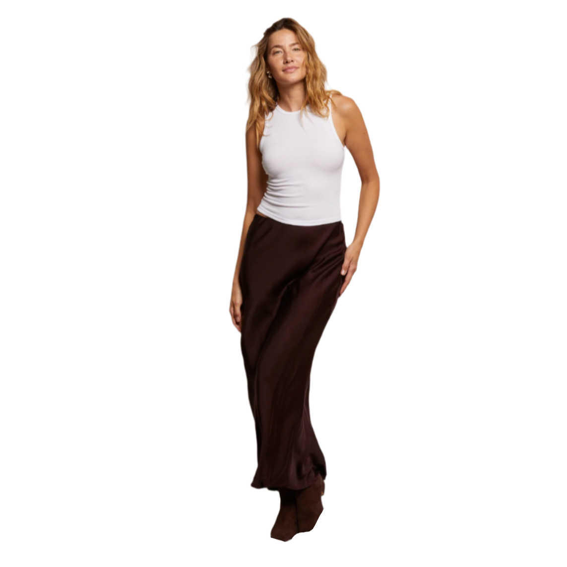 This pull on slip maxi skirt is cut on the bias which gives it just the right amount of stretch and movement. cut in a gorgeous satin that’s smooth to the touch and offers a subtle sheen.
