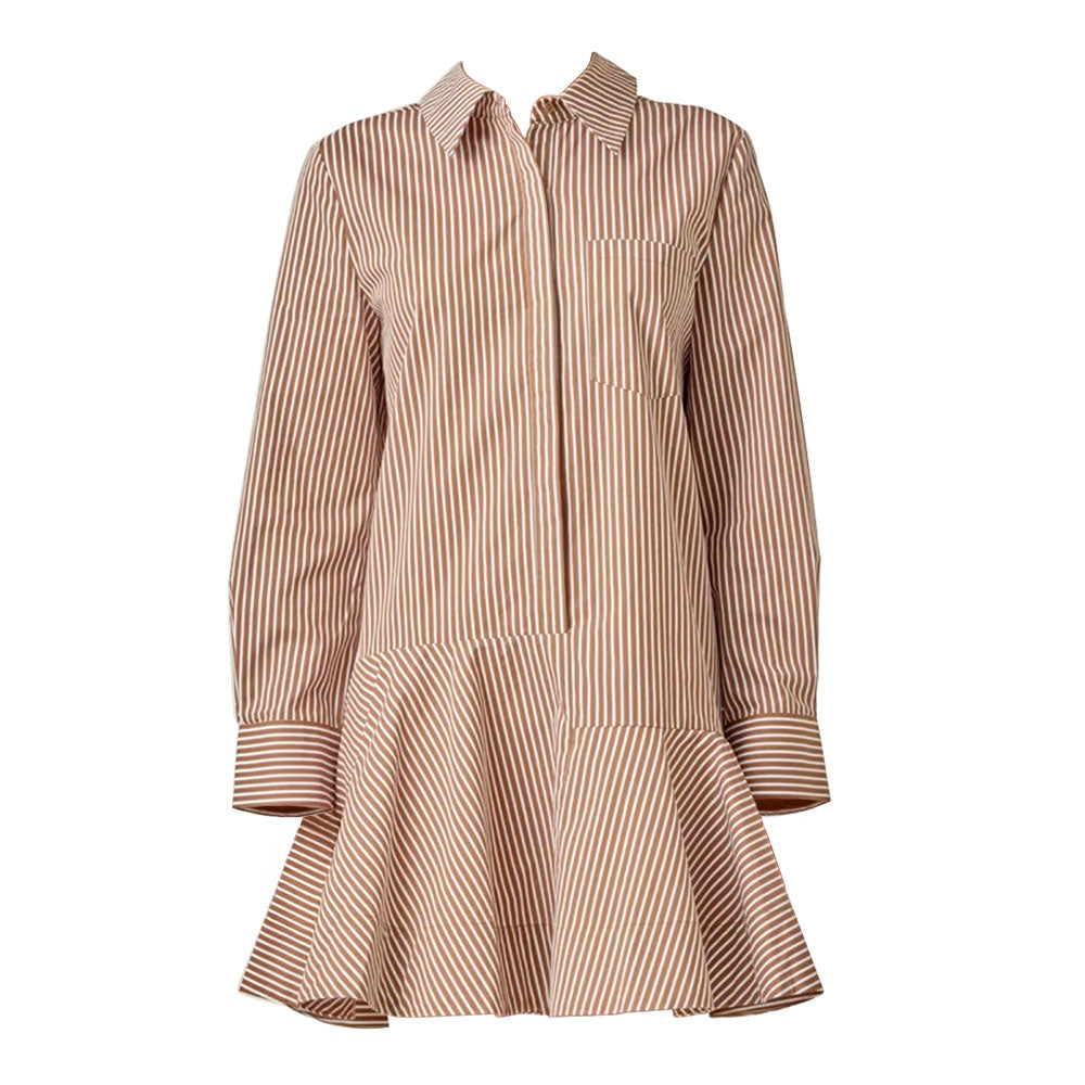 - Cascading flared skirt detail