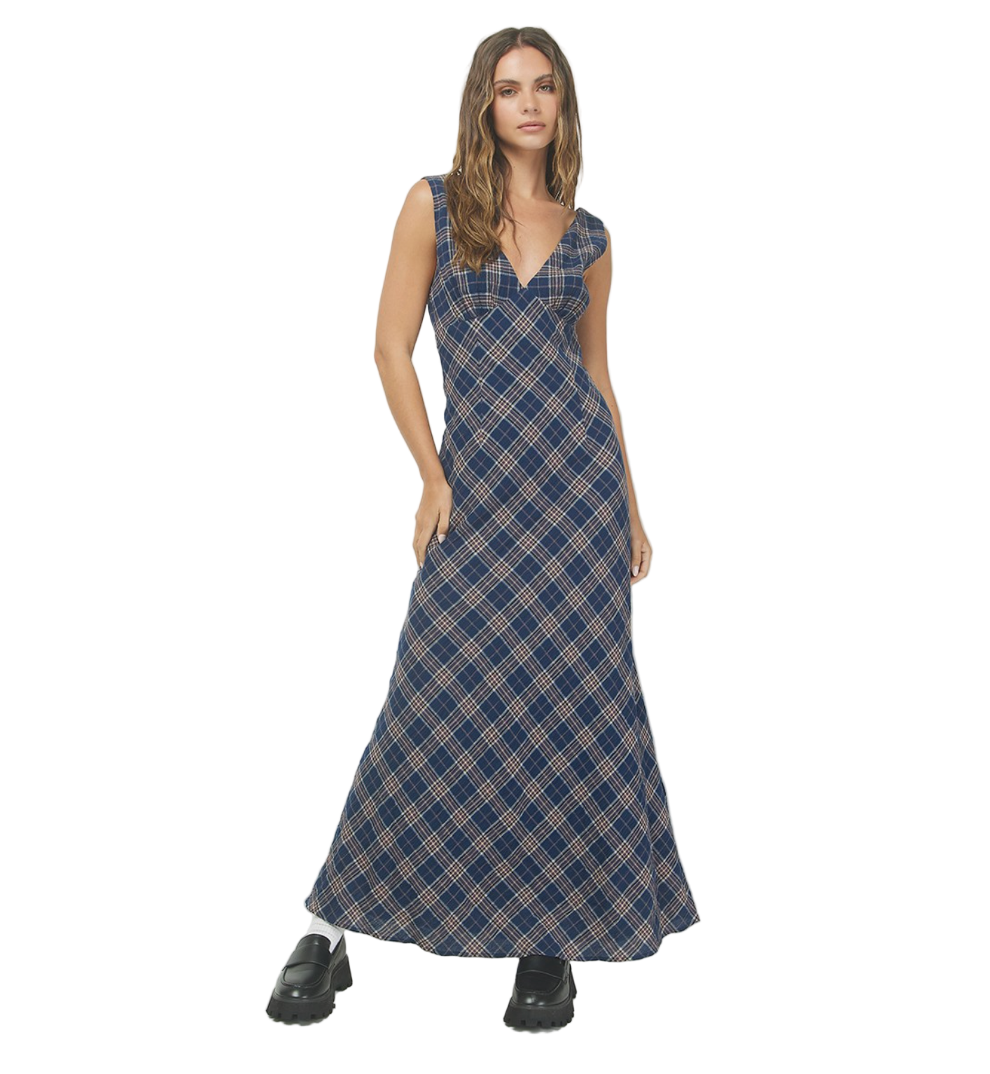 Step into effortless charm with the Felicity Plaid Maxi Dress. Featuring a flirty deep V-neck and a sleeveless silhouette, this dress moves gracefully thanks to its bias cut detail. The back zipper ensures a sleek fit, while the full lining keeps you comfortable and confident all day long. Perfect for sunny days or casual nights out!