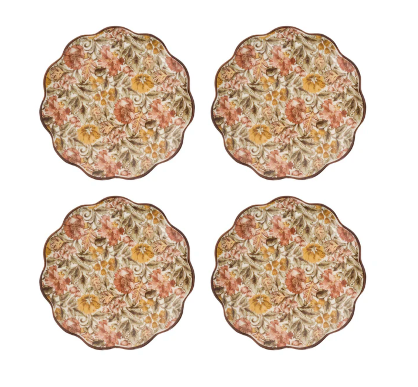 Inspired by heirloom textiles with a romantic floral motif in earthy tones, these party plates are perfect for gatherings and golden hour entertaining. This set also moonlights as lovely little catchalls to sprinkle around the home (think keys, trinkets, and treats) and can make a lovely gift.