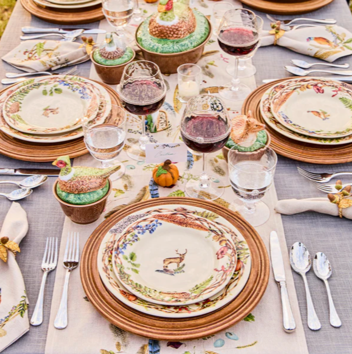 Annie Selke, Dash & Albert, Pine Cone Hill, Julie Vos, Juliska, Oh My Mahjong, VIETRI, Bodrum, Mackenzie Childs, Casafina, Costa Nova, Mottahedeh, Estelle Colored Glass, John Robshaw, Banwood, and Simon Pearce.