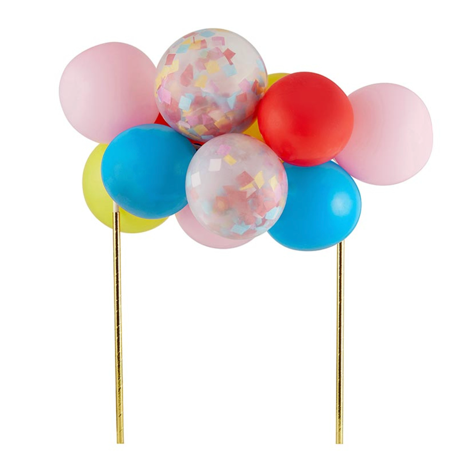 Top any cake in style with this mini balloon cake topper! Includes eleven balloons, with the clear balloons pre - filled with confetti! Self assembly required.