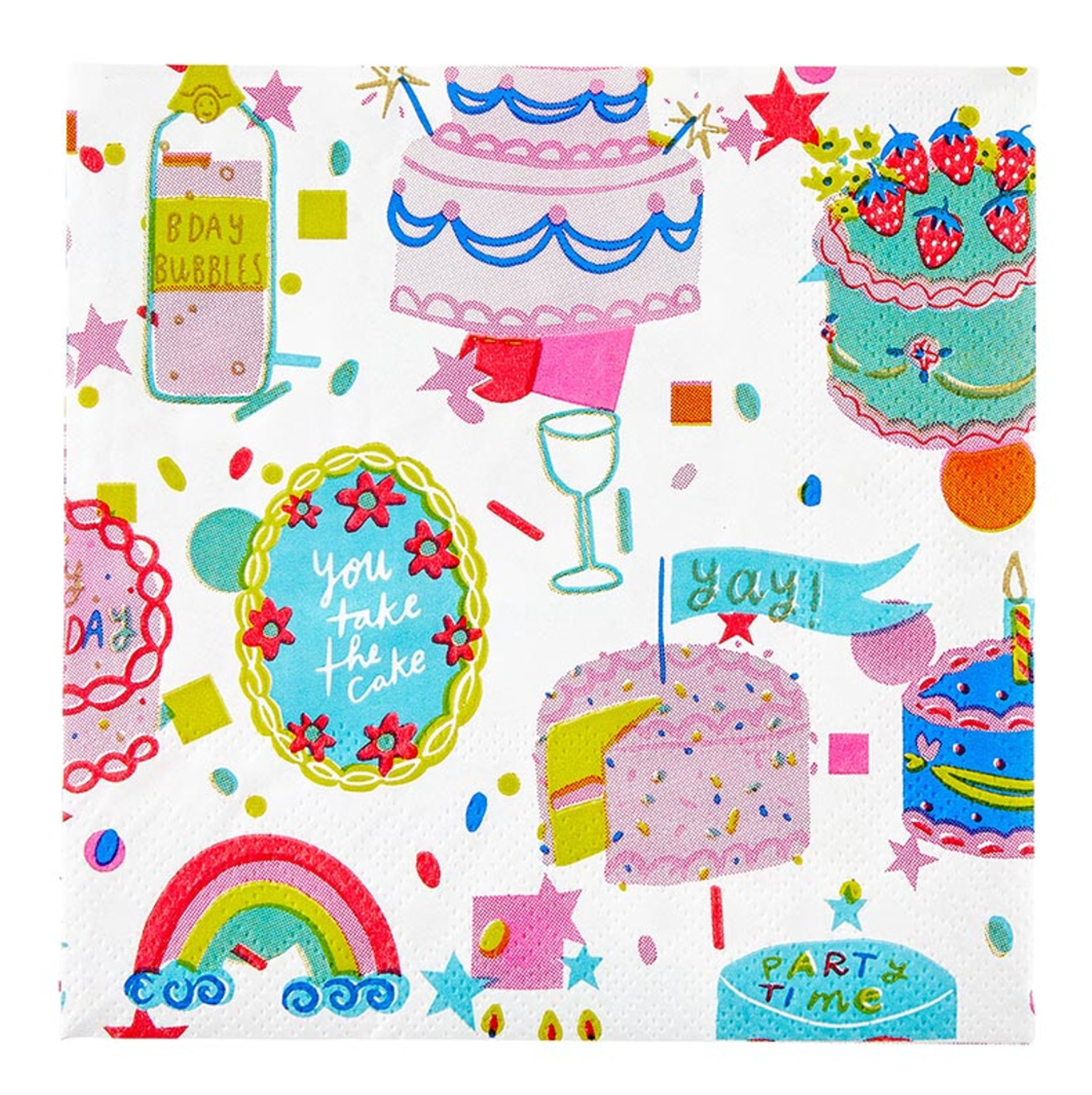 Set includes - 1 paper garland, 1 cake topper, 12 ct paper cups, 12 ct paper plates, 12 ct paper table accents, and 20 ct beverage napkins.