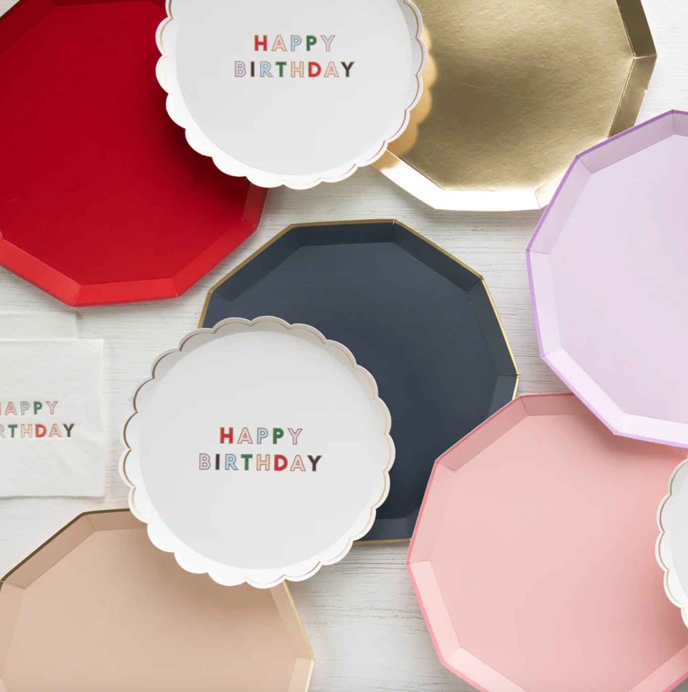 Make your birthday party one to remember with the Signature Happy Birthday Small Plates! No matter the theme, whether it's a grown-up milestone birthday or a child's ballerina, Barbie, or princess party, these scalloped paper plates will elevate your celebration!