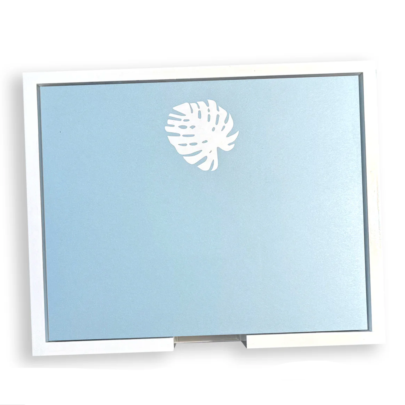 Large White Foil Leaf Blue Notepad in White Lacquer Tray
