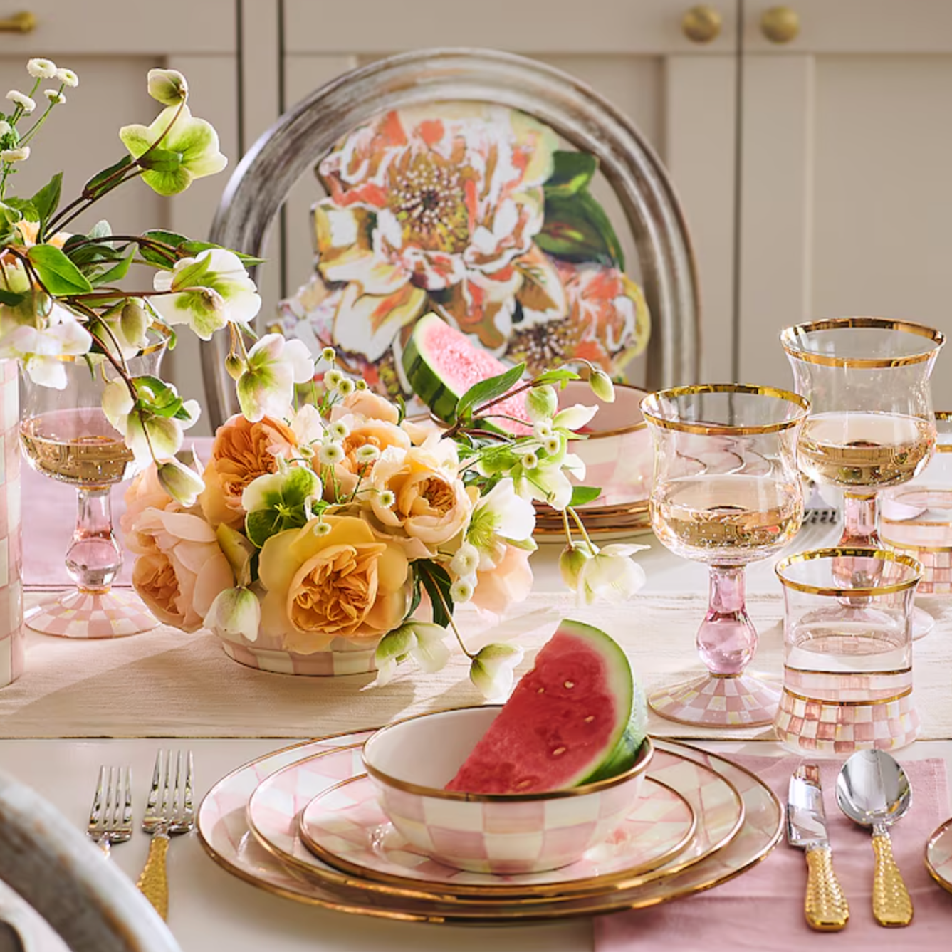 Make any occasion more special by setting the table with our hand-painted Rosy Check® Wine Glass.