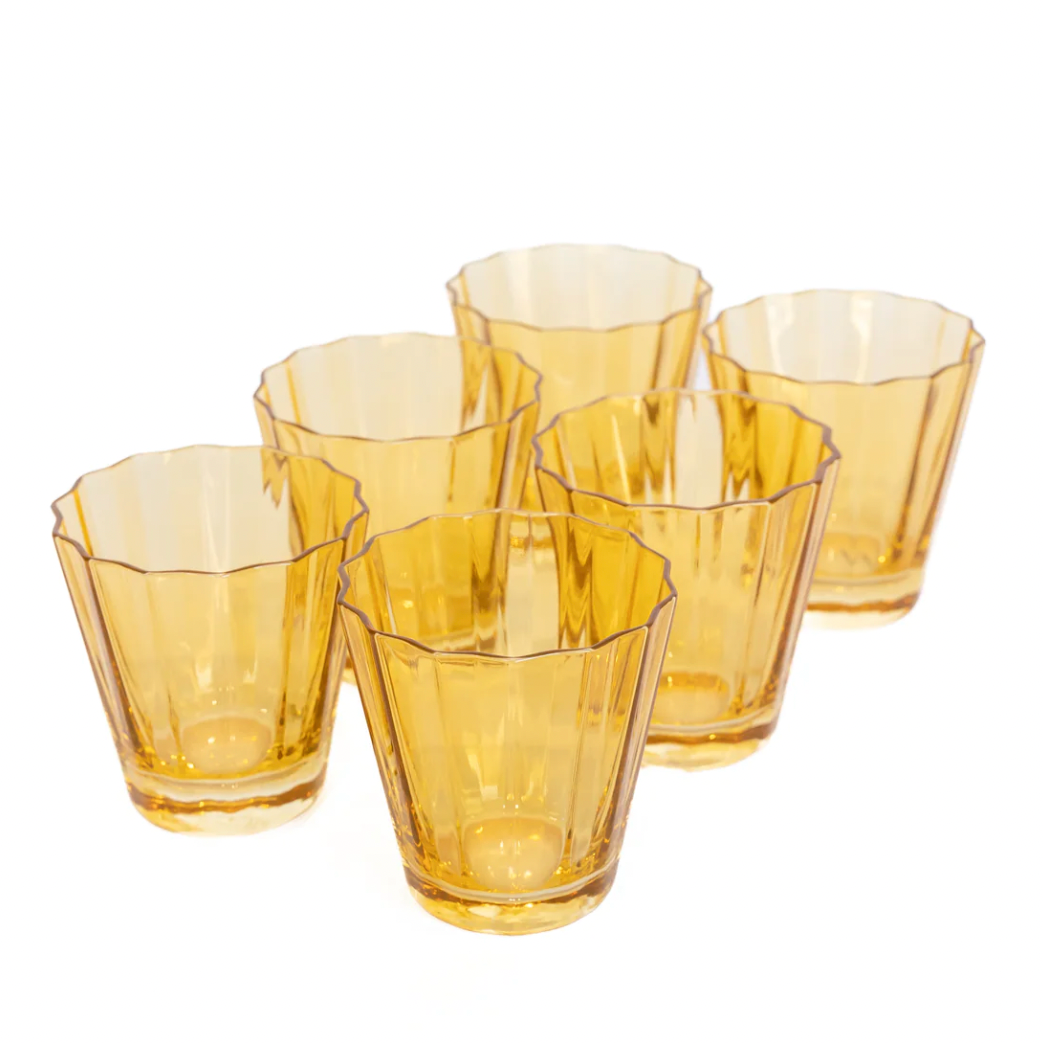 A delicately scalloped, hand-blown collection of highballs, lowballs and vases celebrating the joyous Sunday dinners experienced by our Founder.