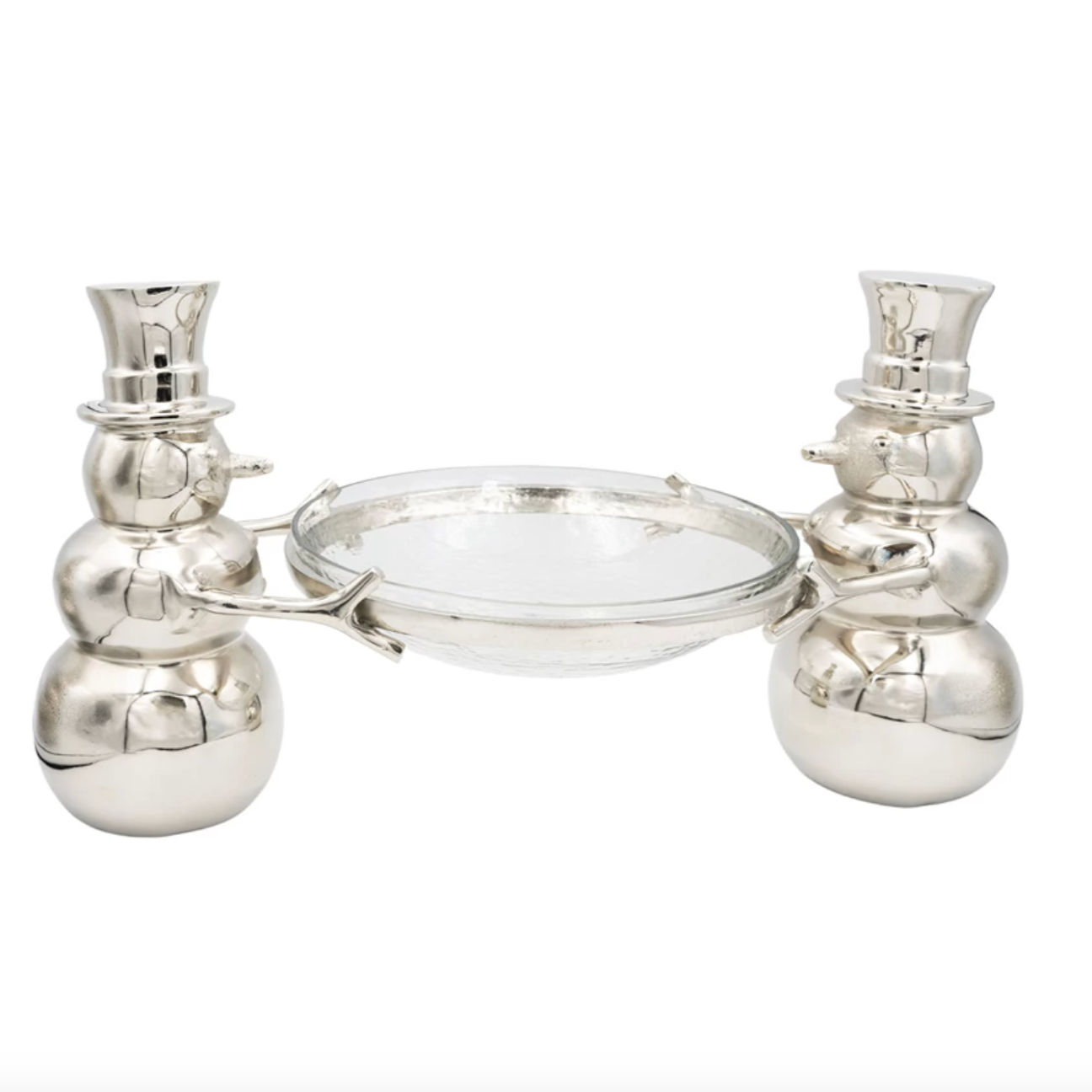 This charming Nickel Snowman Set Bowl adds a playful touch to any space. With a smooth nickel finish, it features a friendly snowman holding a bowl perfect for snacks, trinkets, or holiday treats. Its whimsical design brings festive cheer while offering practical storage, making it a delightful addition to your seasonal décor.
