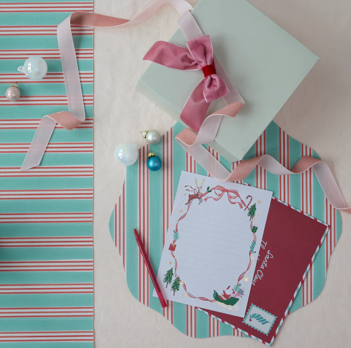 Special edition created with Meri Meri. In Festive Stripe, the traditional holiday mix of red and green is reimagined through bold stripes, modern tones, rich texture, and scalloped edges for a timeless yet bold look.