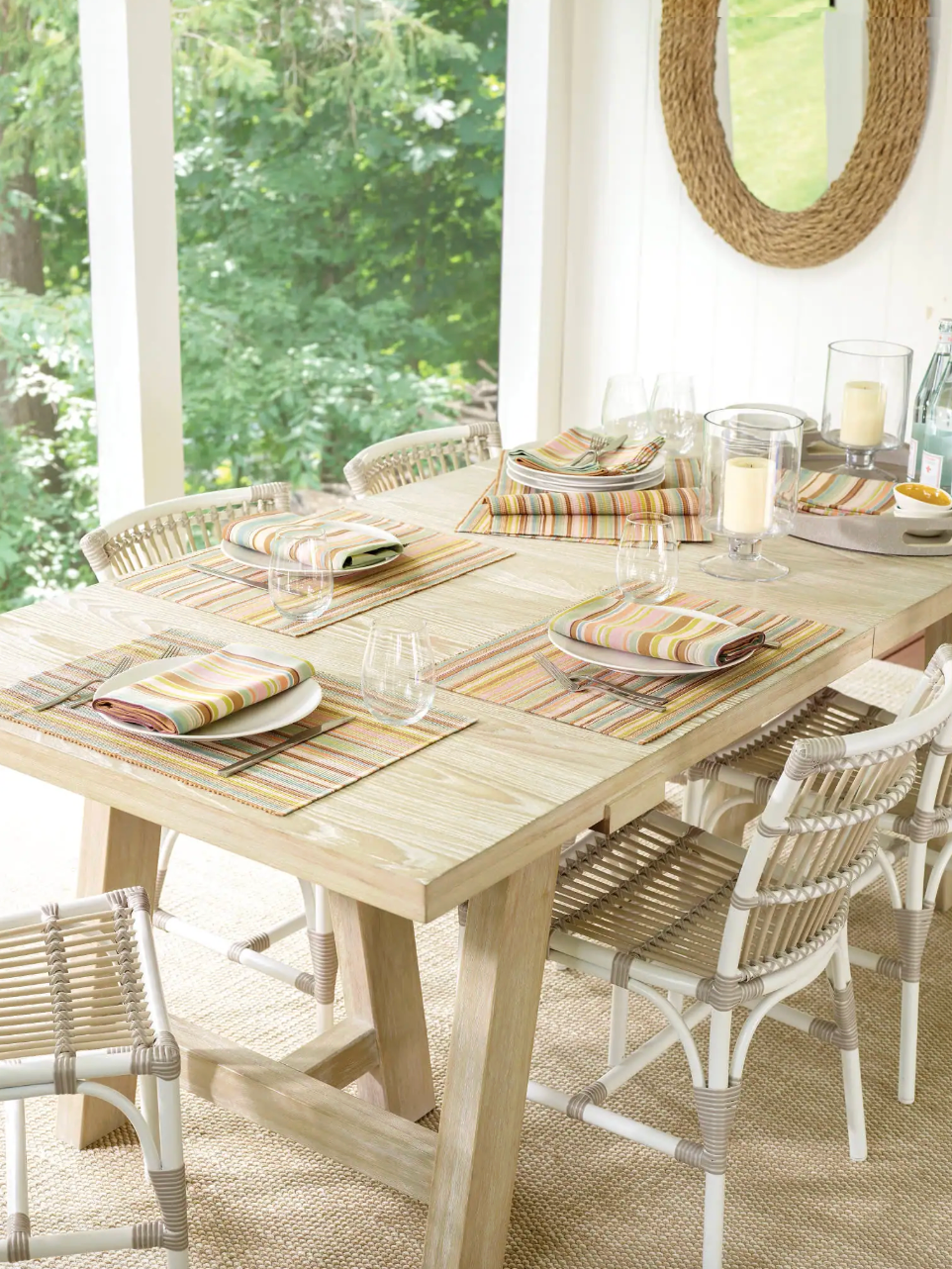 Annie Selke, Dash & Albert, Pine Cone Hill, Julie Vos, Juliska, Oh My Mahjong, VIETRI, Bodrum, Mackenzie Childs, Casafina, Costa Nova, Mottahedeh, Estelle Colored Glass, John Robshaw, Banwood, and Simon Pearce.