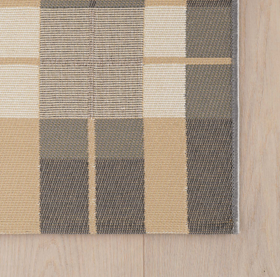 This modern plaid rug is woven from durable synthetics, offering a soft and durable flat pile that's perfect for everyday living. Its versatile style makes it a great addition to any indoor space.