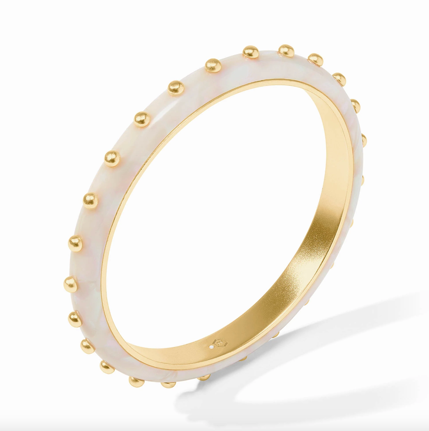 An elegantly rounded bangle of polished translucent acrylic lined with smooth gold.