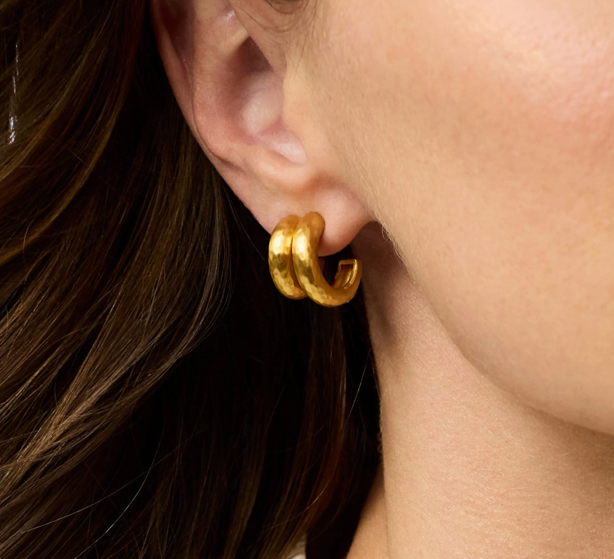 Lightly hammered gold double hoop.