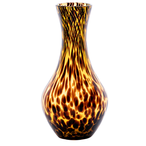 This richly hued tortoiseshell carafe features a translucent brown body and dark specks that will be a handsome addition to any dining table or to leave on a guest room table.