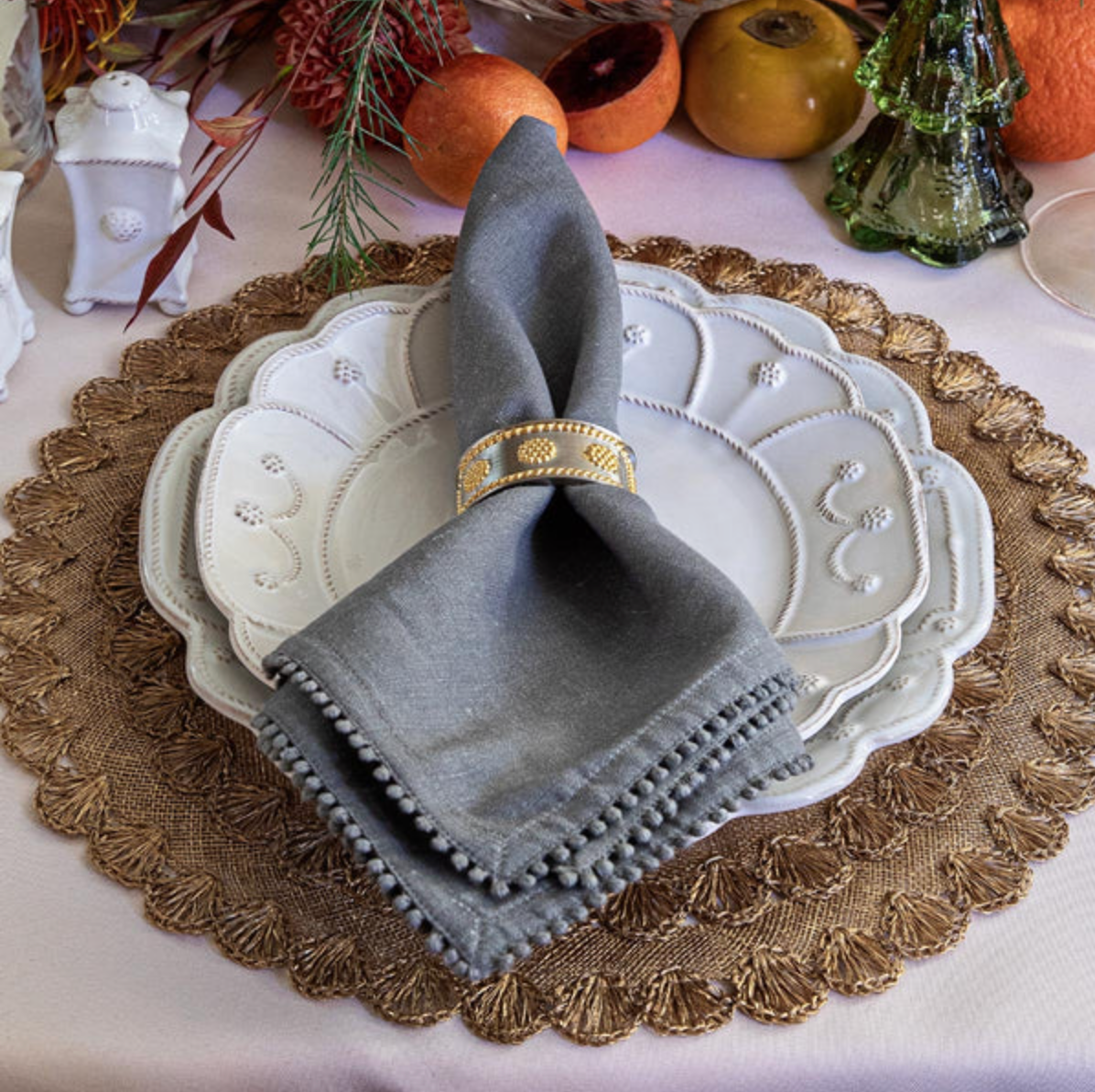 This decidedly chic napkin accessorizes any table setting with that perfect balance of casual-meets-impeccable that French aunties have been effortlessly achieving forever. The cotton/linen blend is textural and elegant, while the hand-knotted trim lends subtle flair. One can never have enough of these versatile linens on hand, for everything from midweek takeout to your most formal occasions.