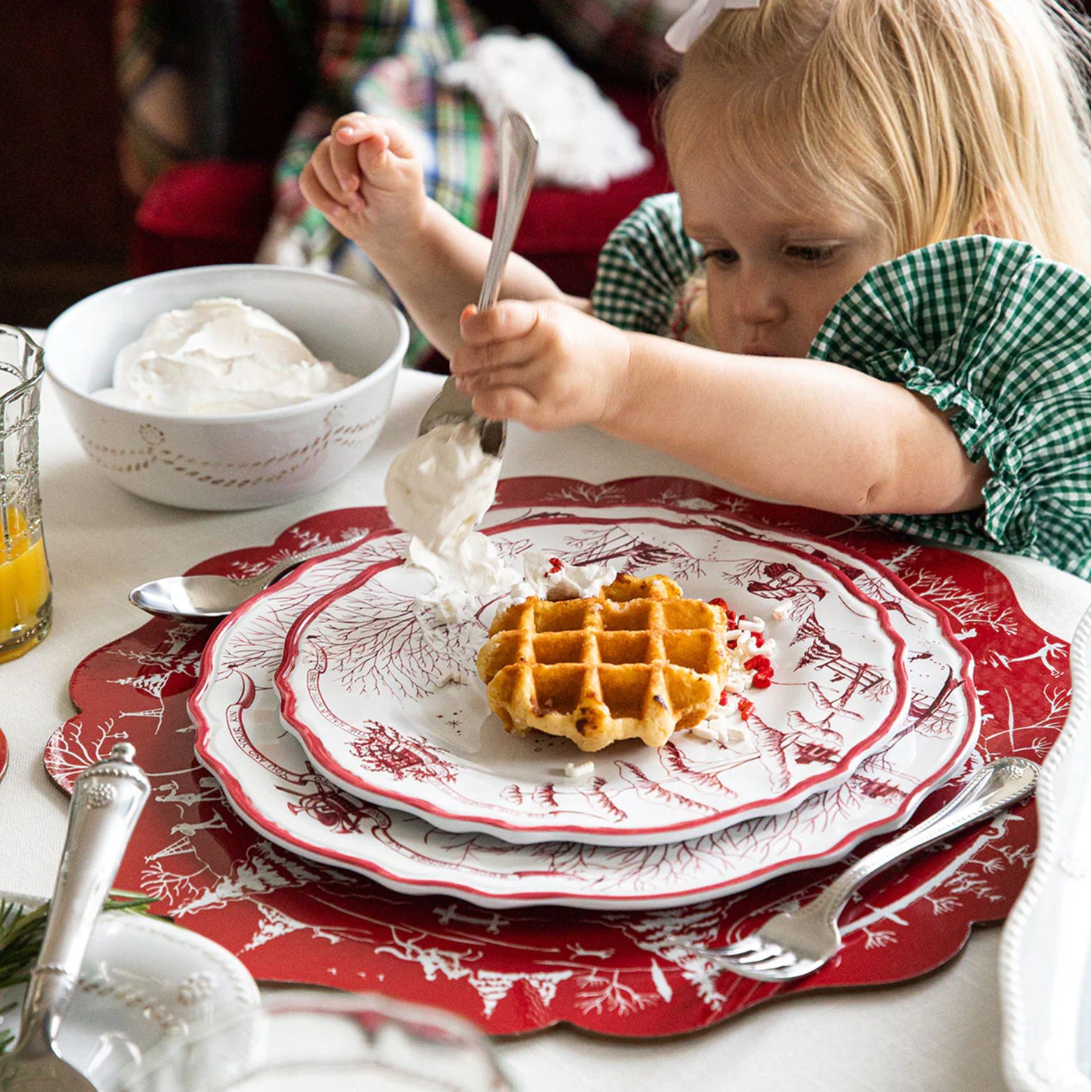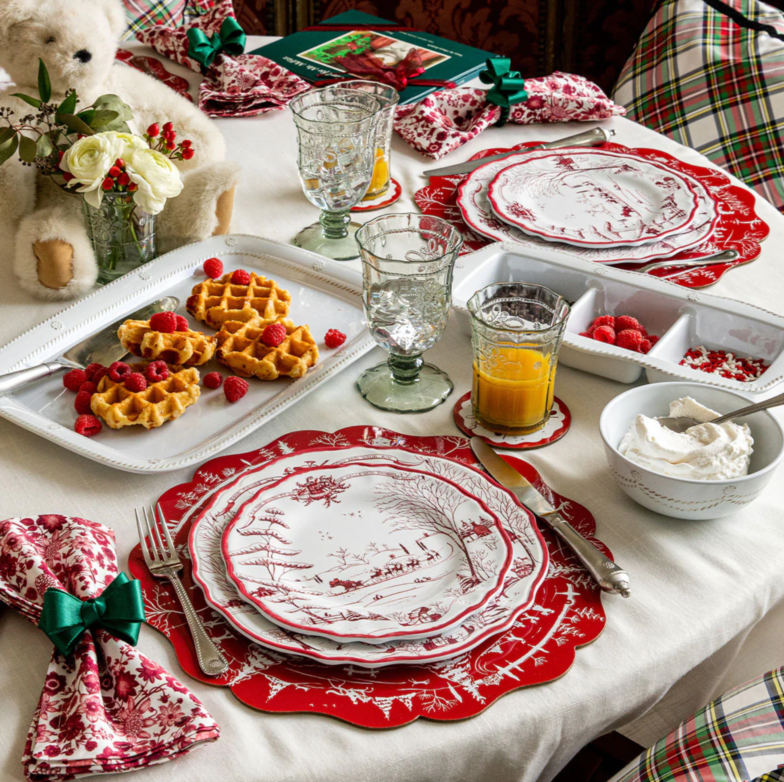 Our charming English countryside estate is snow-covered for the holidays! The perfect backdrop for your winter celebration, these ruby red pieces are illustrated in great detail by our friend and renowned artist, Deborah Sears, and mix beautifully with our other Holiday collections.