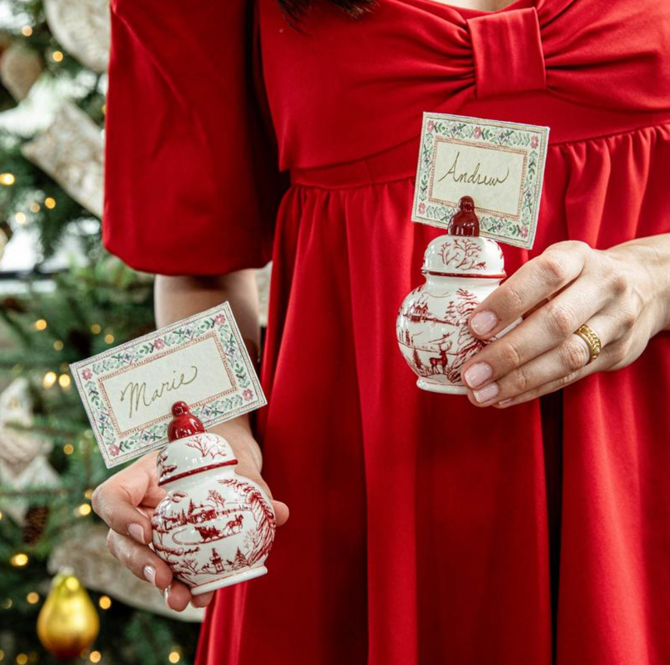 Juliska Country Estate Winter Frolic Ruby Ginger Jar Place Card Holder, Set of 4