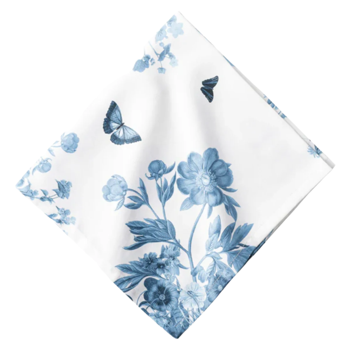 Our wildly beautiful floral in chambray-blue hues depicts our beloved Field of Flowers pattern. This napkin will add a charming touch to any tablesetting.
