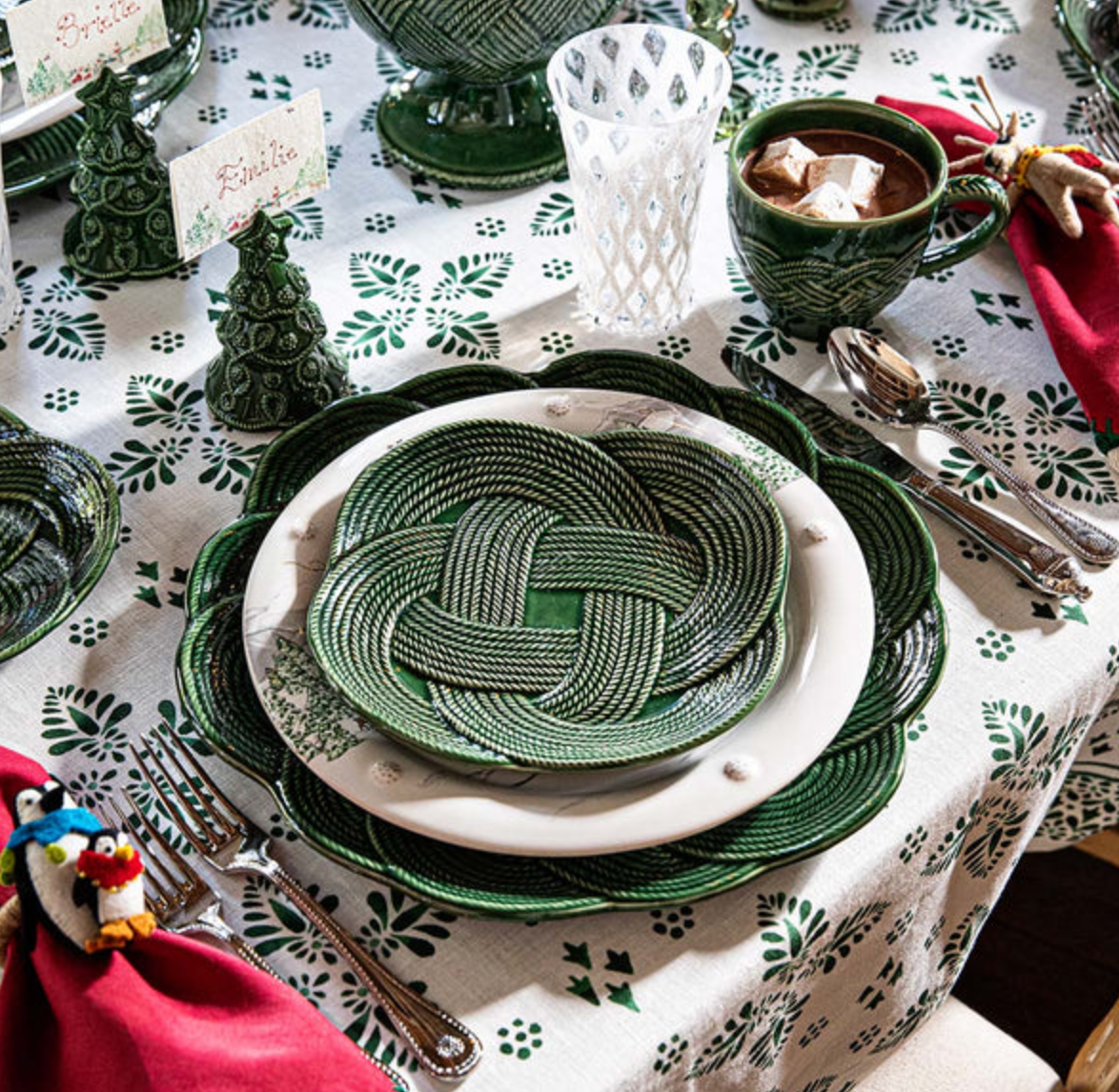 Annie Selke, Dash & Albert, Pine Cone Hill, Julie Vos, Juliska, Oh My Mahjong, VIETRI, Bodrum, Mackenzie Childs, Casafina, Costa Nova, Mottahedeh, Estelle Colored Glass, John Robshaw, Banwood, and Simon Pearce.