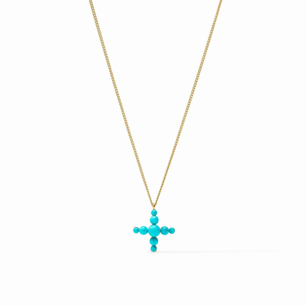 Julie Vos Gumdrop Cross Delicate Necklace, Turquoise Blue