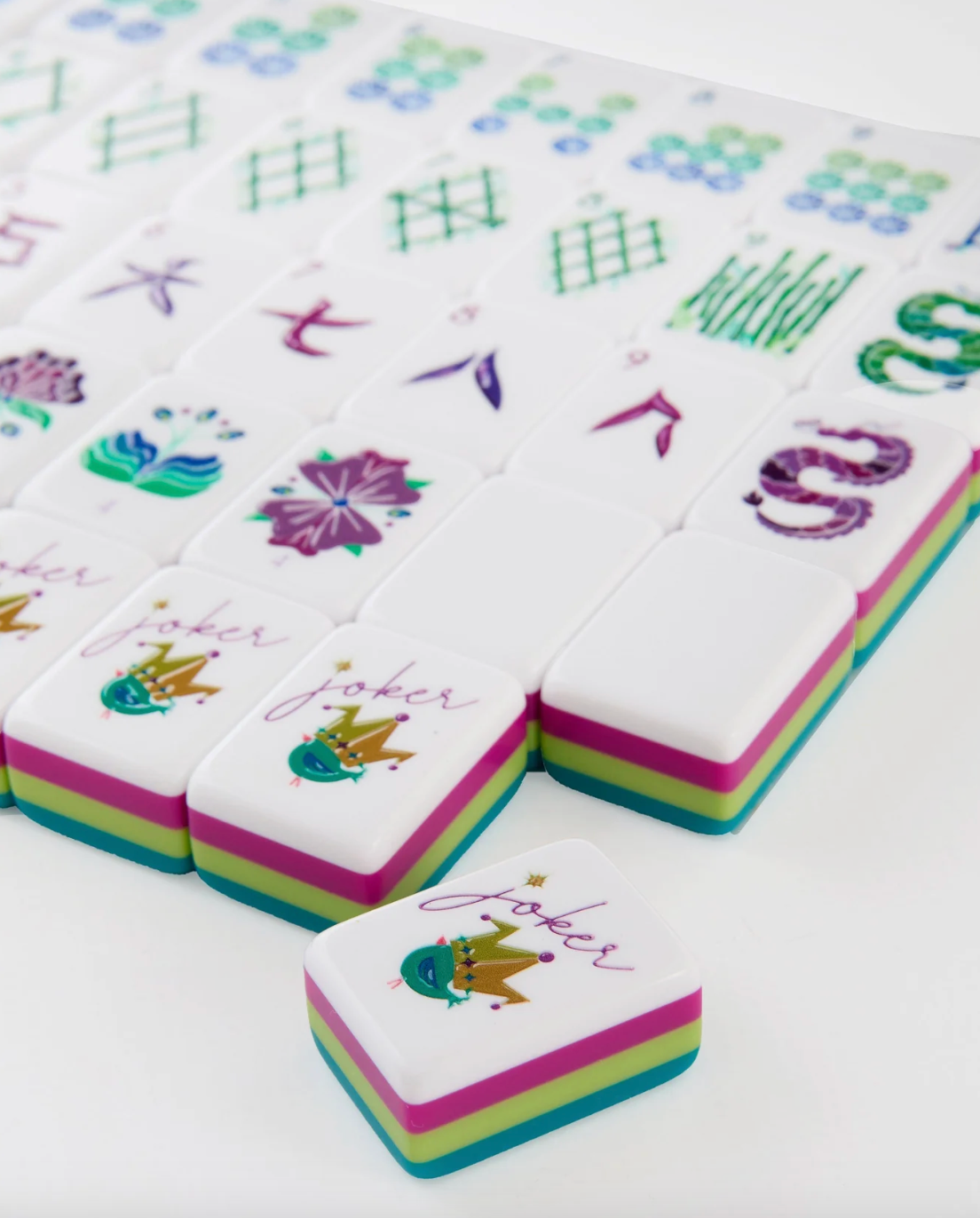 Vibrant, playful, and effortlessly chic, the Lagoon Tiles bring a splash of color and energy to every Mahjong table. Designed in a harmonious palette of blues, greens, and soft pinks, this collection evokes the calm and beauty of a serene lagoon, perfect for players who love a fresh, modern aesthetic. Balanced, eye-catching, and full of character, the Lagoon Tiles turn every round into a joyful and elevated gameplay experience.