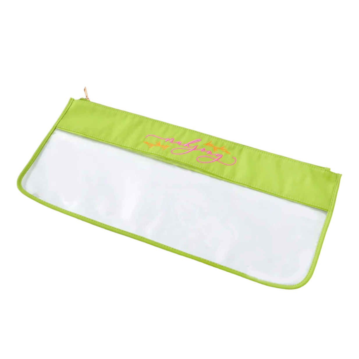 Elegant and effortlessly stylish, the Yellow Zippered Bag is a must-have for any mahjong enthusiast. In a soft lilac hue with white and green embroidery, this bag brings a fresh and sophisticated touch to your game night essentials. Designed for both beauty and function, it features a spacious interior, a secure zipper closure, and a clear bottom section to display your tiles with ease. A perfect blend of charm and practicality for the modern mahjong player!