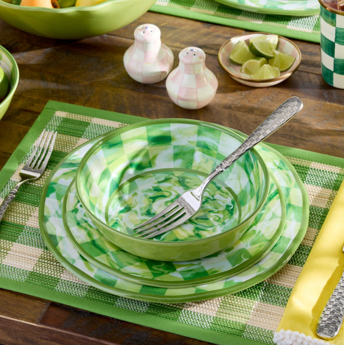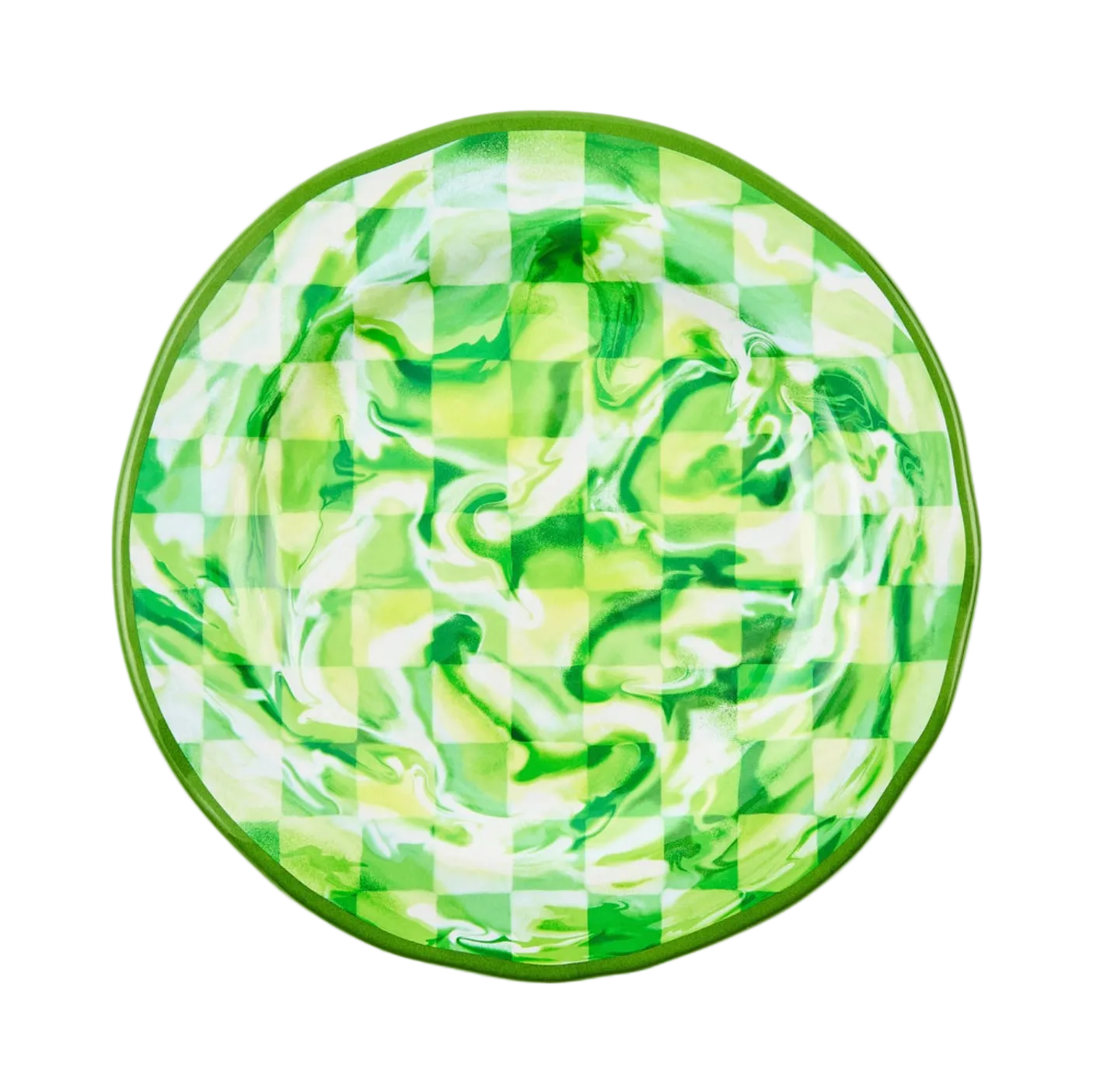 Mackenzie Childs Green Marble Check Melamine Dinner Plate